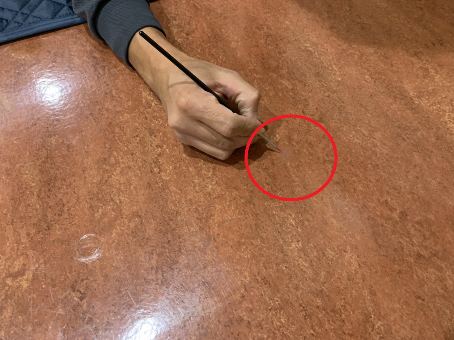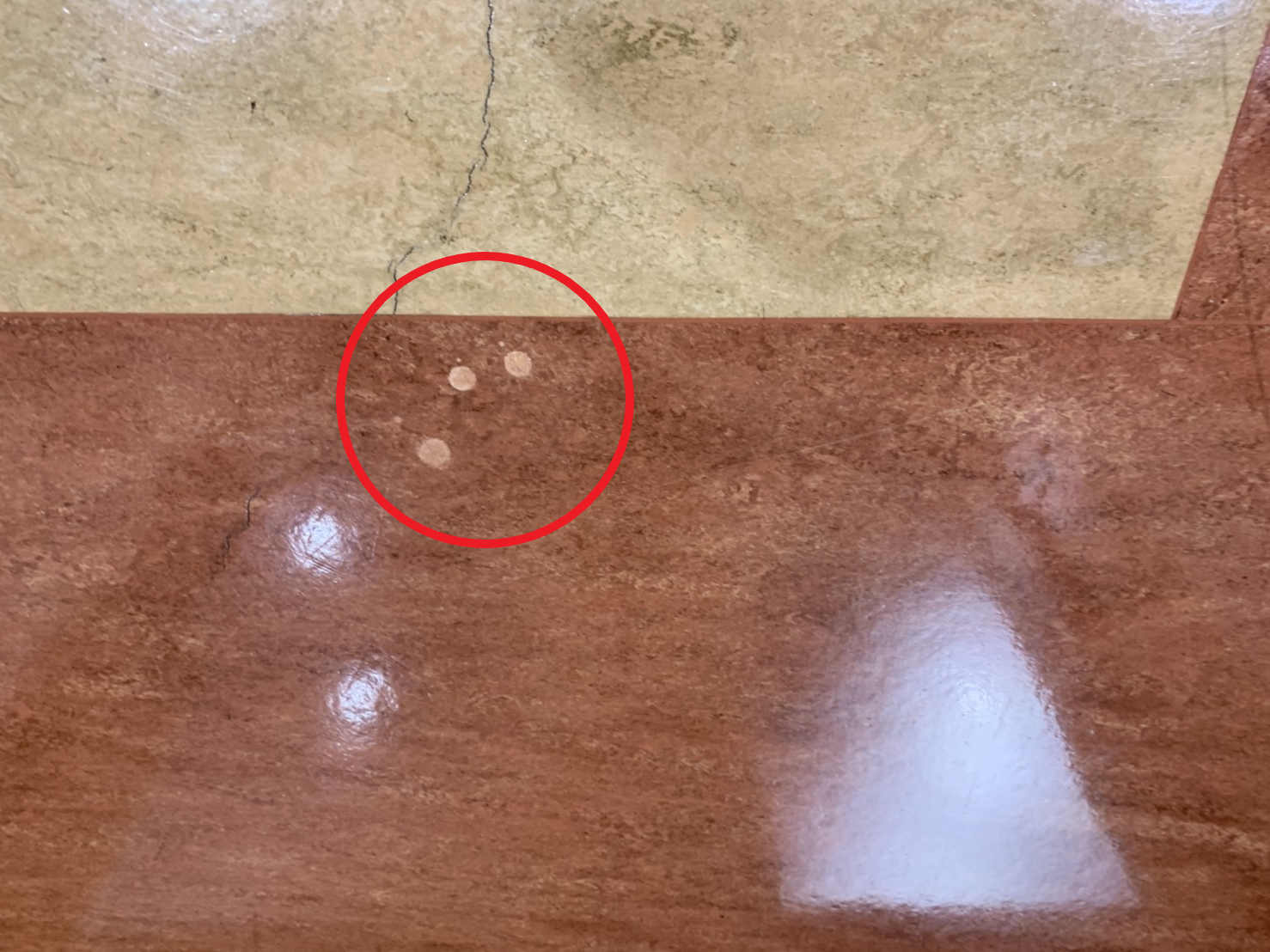 床の色が変わってしまったので、目立たなく