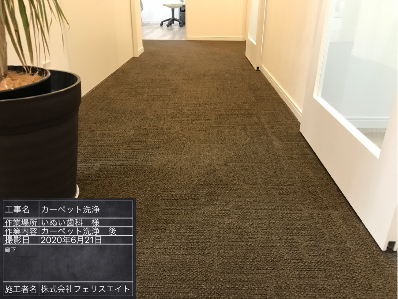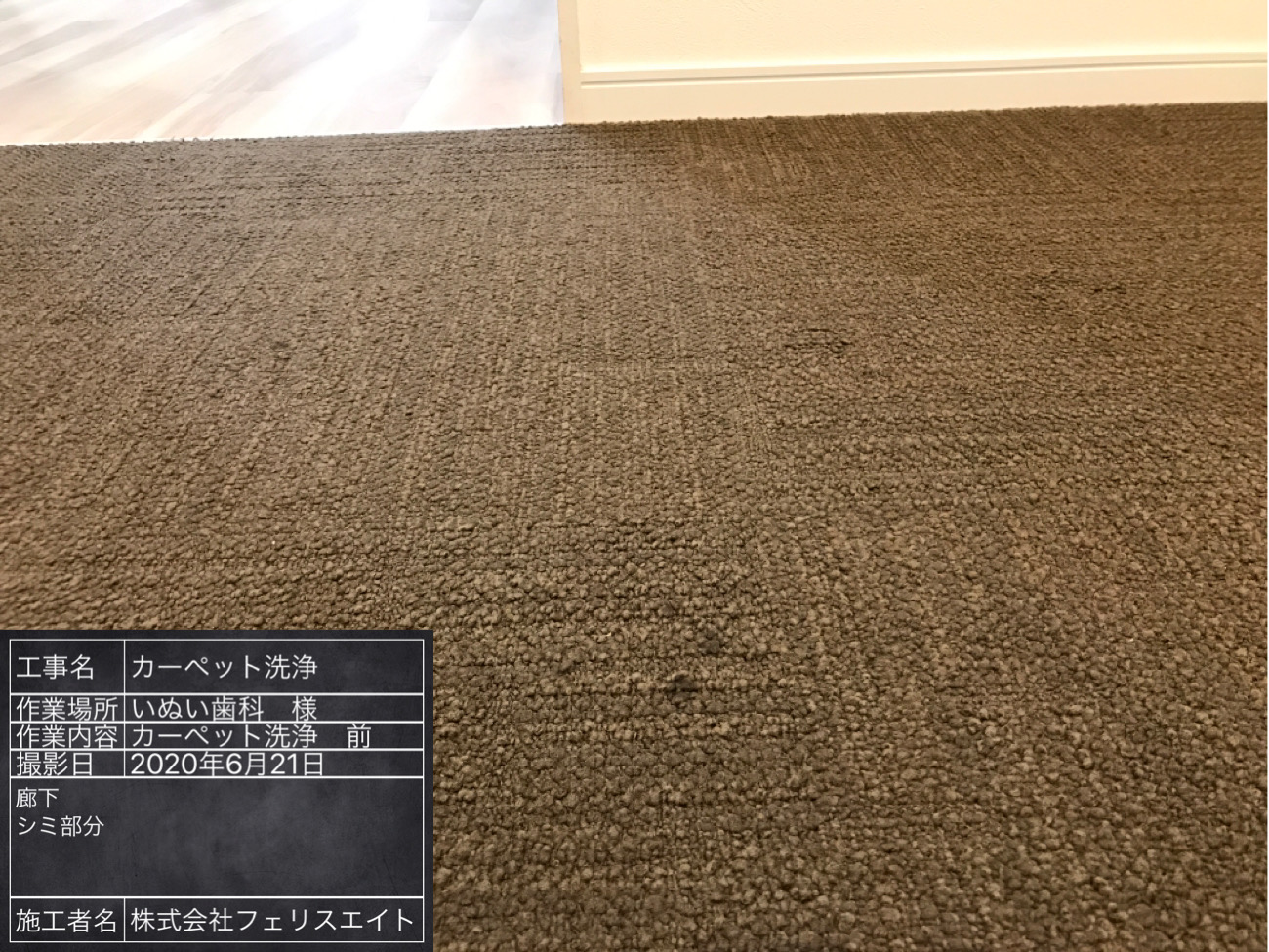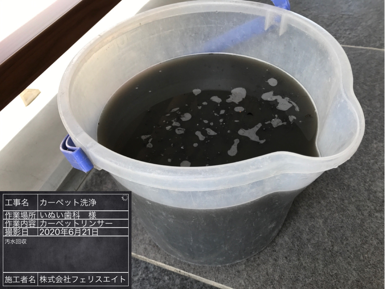 2020年07月04日 カーペットクリーニング 創造舎さんからの紹介で いぬい歯科医院様のカーペットを 清掃をさせてもらいました カーペットの色が茶色なので 一見汚れてないかと思いましたが 汚水を見るとかなり汚れています