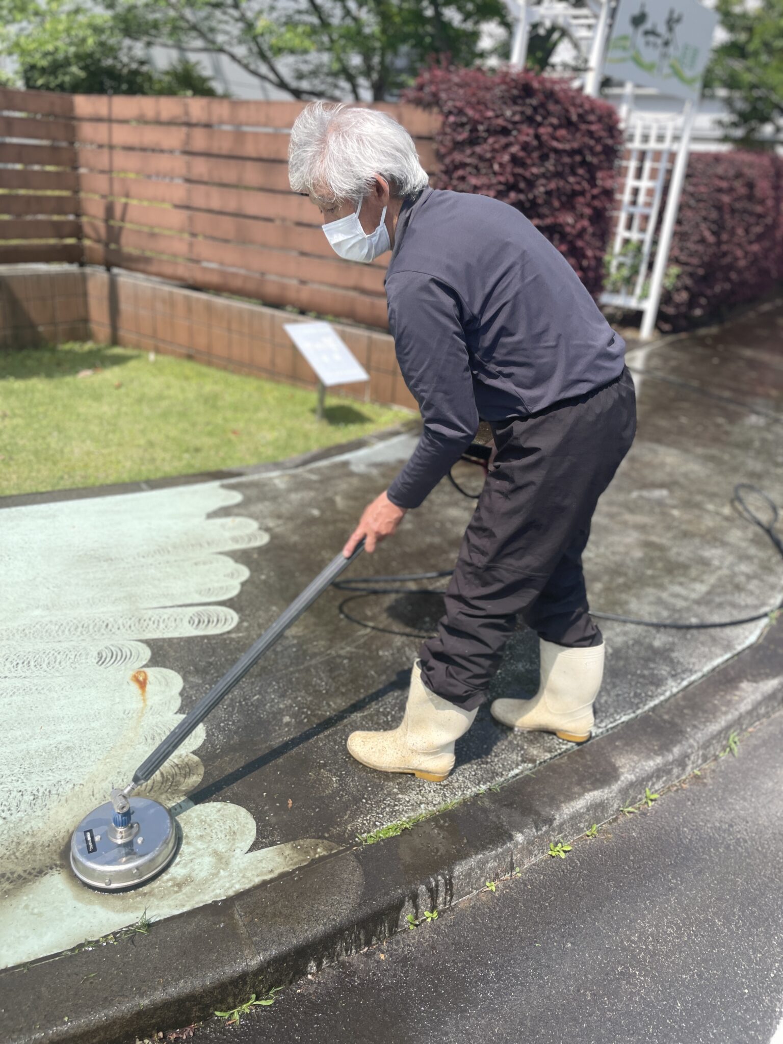 外構の通路が汚れてきた為、高圧洗浄機での