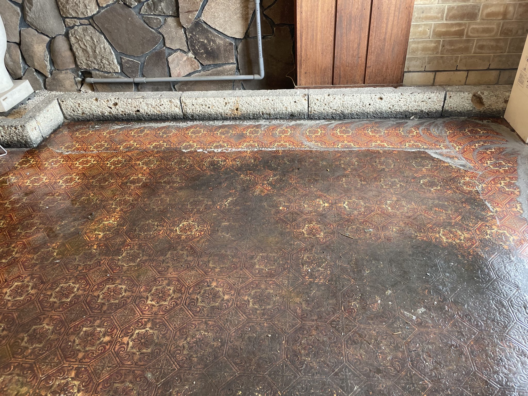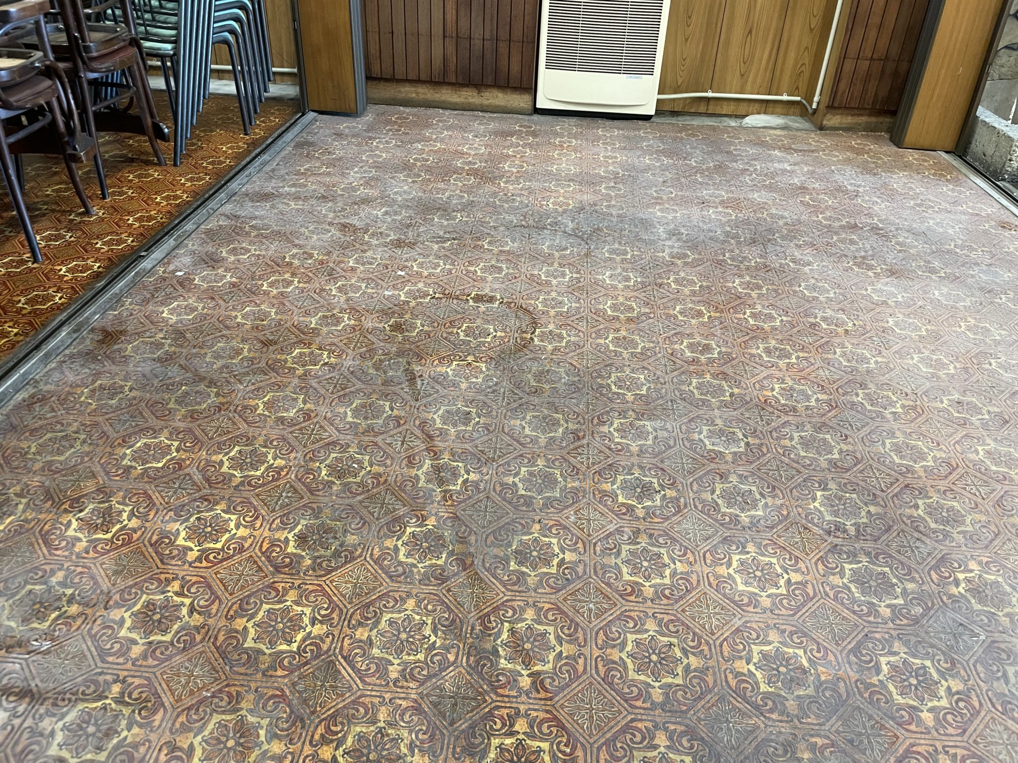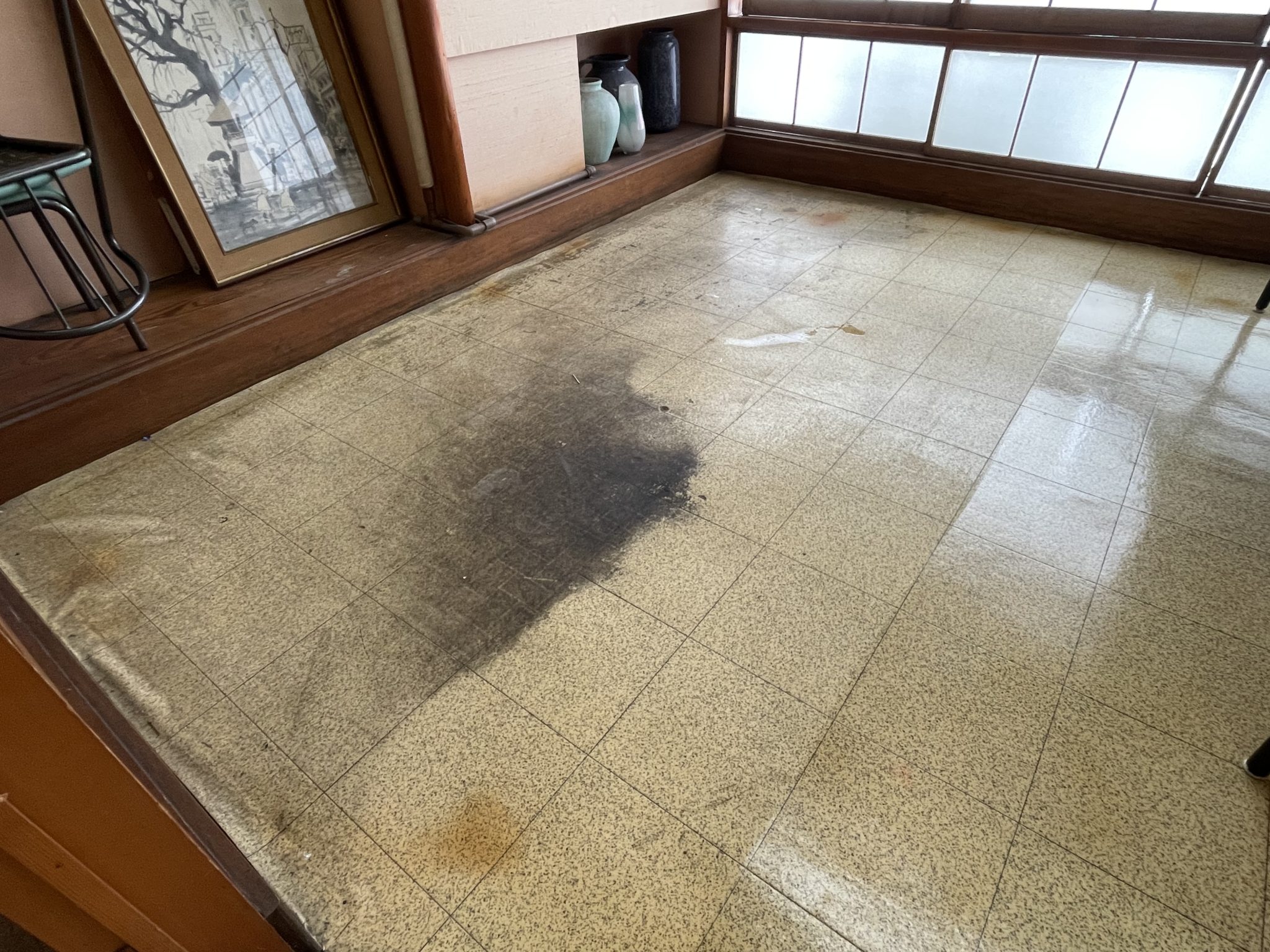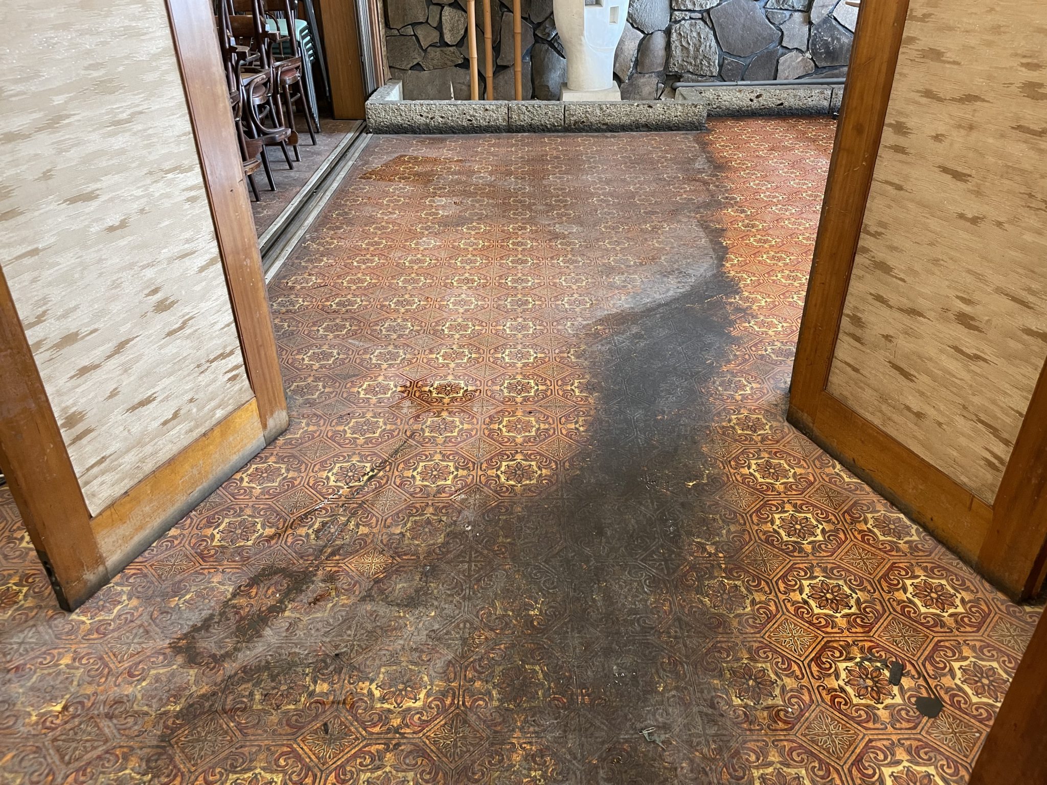 厨房の油汚れが原因で、店舗の床まで